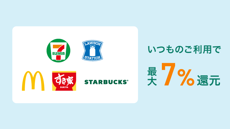 - 対象のコンビニ・飲食店でスマホのタッチ決済で最大7%ポイント還元